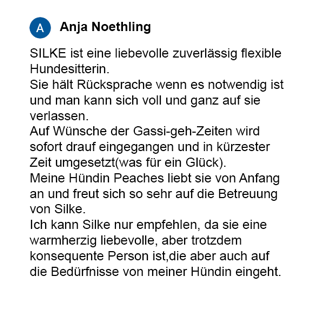 Die Bezahlung erfolgt per Vorkasse oder Überweisung bis spätestens eine Woche vor Betreuungsbeginn.