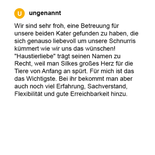 Es ist uns besonders wichtig das Vertrauen Ihrer Lieblinge zu gewinnen, sie liebevoll zu umsorgen und auch auf Eigenheiten einzugehen, denn jedes Tier hat seinen eigenen einzigartigen Charakter.